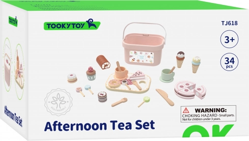 Entdecken Sie den Zauber eines Kinder-Cafés mit dem Holzset Sweet Cake von Tooky Toy. Bunte Desserts, ein Schneidekuchen und eine Roulade, Geschirr und Serviertablett fördern kreatives Spiel, feinmotorische Entwicklung und soziale Kompetenzen. Alles lässt sich im praktischen tragbaren Box verstauen.