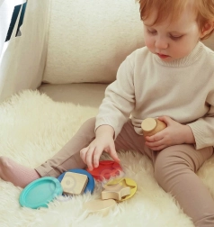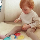 Bunte Ringe und Formen motivieren Kinder ab 12 Monaten zum Stapeln und Sortieren und fördern so die Feinmotorik und die Hand-Auge-Koordination.