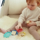 Das Kind lernt spielerisch, Farben, Formen und Größen zu unterscheiden und entwickelt logisches Denken sowie Geduld.