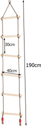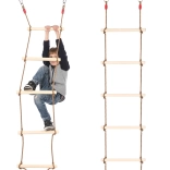 Die Seilleiter ist eine ausgezeichnete Wahl für aktive Spiele im Freien. Glatte Holzsprossen ohne scharfe Kanten bieten einen bequemen Griff und Sicherheit beim Klettern. Starke geflochtene Seile mit Sicherheitsknoten halten die Leiter auch bei intensiver Nutzung stabil.