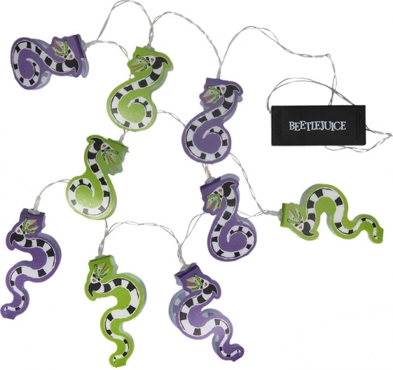 Erleben Sie die Atmosphäre des Films Beetlejuice mit unserer offiziellen Lichterkette. Diese Kette ist 130 cm lang und ideal für jeden Anlass.