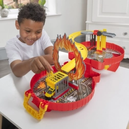 Die ausklappbare Strecke mit Hindernissen, einschließlich „feurigem“ Ring, Barrieren und Looping, sorgt für spannende Missionen und Training für schnelle Rettungen.