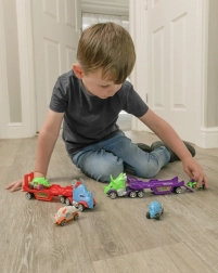 Der Truck und die Autos zeichnen sich durch ein einzigartiges Dinosaurier-Design aus, das die Fantasie der Kinder anregt.