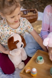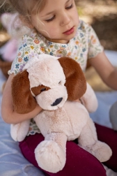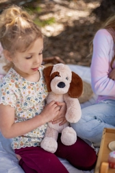 Mit 41 cm ist dieser Plüschhund perfekt, damit Ihre Kinder ihn mit ins Bett oder auf Reisen nehmen können.