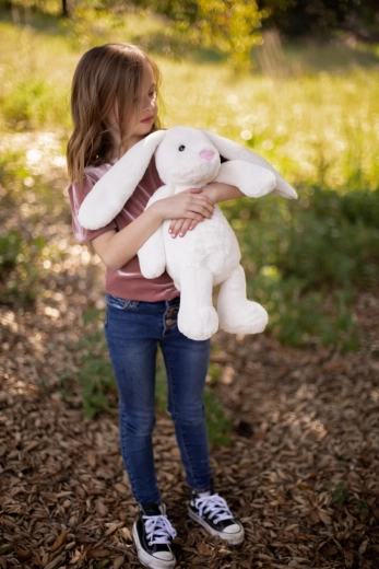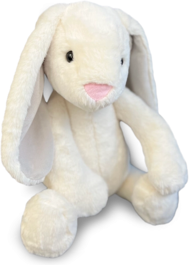 Mit einer Größe von etwa 41 cm ist dieser Hase groß genug, um Trost und gleichzeitig kompakt genug für den einfachen Transport zu bieten.