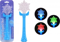 - Leuchteffekt: Durch Drücken der Schneeflocke am Griff leuchtet der Stab auf.