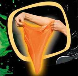 Dank seiner speziellen Rezeptur vibriert und wackelt dieser einzigartige Jiggly Slime angenehm bei Berührung und lässt sich dabei leicht in alle Richtungen dehnen. Ideal zum langen Kneten, von Hand zu Hand geben, Dehnen und zum Bilden von Blasen. Der fluoreszierende Pigmentfarbstoff verleiht ihm ein sattes Orange und den Glow-in-the-Dark-Effekt für noch mehr Spielspaß.