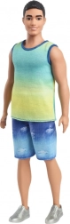 Ken trägt ein Ombre-Top im Übergang von Blau zu Grün, das perfekt zu seiner Persönlichkeit passt.