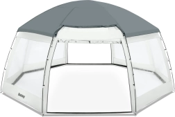 Dank der großzügigen Abmessungen eignet sich der Pavillon auch für größere Aufstellpools – er ermöglicht komfortable Bewegungsfreiheit, die einfache Nutzung einer Poolleiter und dient zugleich als Gartenpavillon für gesellige Runden. Die schnelle Montage in ca. 30 Minuten und die Transporttasche erleichtern die saisonale Nutzung.