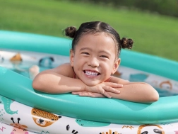 Der Pool mit den Abmessungen 122 cm x 25 cm und einem Fassungsvermögen von 140 Litern bietet ausreichend Platz zum Planschen, ohne viel Raum einzunehmen. Für Kinder über 2 Jahre unter Aufsicht eines Erwachsenen.