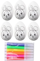 Dieses Set aus Polystyrol-Eiern ist eine hervorragende Wahl für das österliche Basteln zu Hause, in der Schule und im Kindergarten. Jedes Ei hat ein niedliches Hasenmuster und dank der glatten Oberfläche lassen sich Farben und Verzierungen hervorragend auftragen. Im Set enthalten sind 6 farbige Filzstifte, sodass Sie sofort loslegen können.