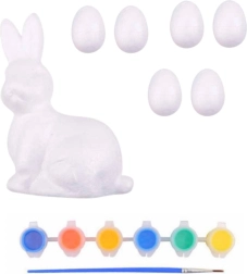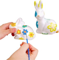 Dieses Osterset ist die perfekte Wahl für gemeinsames Basteln zu Hause, in der Schule oder im Kindergarten. Kinder haben Spaß am Malen und Verzieren, Eltern schätzen die unkomplizierte Vorbereitung und saubere Beschäftigung. Dank der 6 intensiven Farben gestalten Sie mühelos bunte Ostereier und ein niedliches Häschen.
