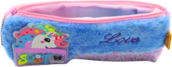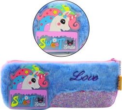 Plüsch-Federmäppchen mit Einhorn, blau mit glitzernden Elementen