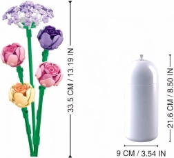 Der Bausatz ist kompatibel mit LEGO, COBI und Mega Bloks, sodass Sie ihn leicht mit weiteren Elementen aus Ihrer Sammlung erweitern können. Dank realistischer Proportionen macht sich der fertige Strauß in der Vase zu Hause wie im Büro hervorragend.