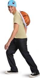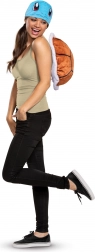 Die blaue Kappe und der braune panzerförmige Rucksack schaffen ein verspieltes und auffälliges Outfit, ideal für Kostüme oder den Alltag.