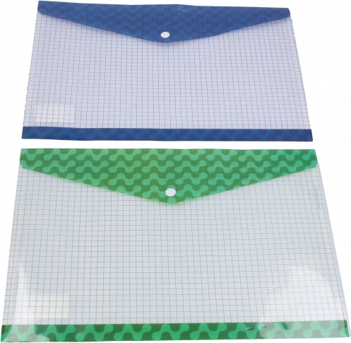 Praktische und stylische Mappe mit Druckknopf im Format 36x26 cm, ideal zur Organisation Ihrer Dokumente. Verfügbar in vier attraktiven Farben: blau, rosa, orange und grün.