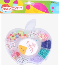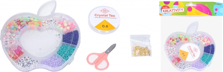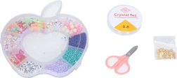 Perlenset Apfel bietet alles, was Sie zur Herstellung eigener Halsketten und Armbänder benötigen. Das Set ist perfekt für kreatives Gestalten und enthält Perlen, Faden, Schere und Verschluss.
