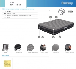 Großzügige Maße 152 × 203 × 36 cm, weiche gerippte Oberfläche und ein integriertes Kissen für erholsamen Schlaf von zwei Erwachsenen.