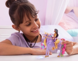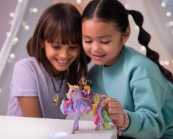 Wildstar ist mit Lichteffekten ausgestattet, die durch Drücken des Sterns an der Seite des Einhorns aktiviert werden. So können Kinder ihre Lieblingsszenen aus den Geschichten nachspielen. Sophia ist mit 7 Bewegungspunkten flexibel, um auf Wildstar zu reiten, das mit dem Huf stampft und ein Regenbogenmuster projiziert.
