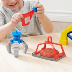 Das Rubble & Crew-Set: Kranbau-Turm enthält einen realistisch entworfenen Kranbau-Turm, genau wie in der Serie, mit kindgerechten Bauwerkzeugen. Dieser Turm enthält ein System zur Formung von kinetischem Sand, das die Herstellung eigener Bauklötze ermöglicht. Verwenden Sie einfach den großen roten Hebel, um die Presse zu starten und eigene Bauklötze zu erstellen.