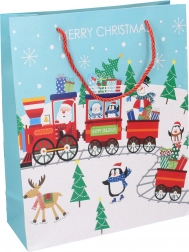 Diese weihnachtliche Geschenktasche in einer universellen mittleren Größe eignet sich ideal für Bücher, Kosmetik, kleinere Dekoartikel und weitere Geschenke. Dank der robusten Ausführung und praktischen Griffe sorgt sie für einen bequemen Transport und eine repräsentative Optik – ganz ohne aufwendiges Einpacken.