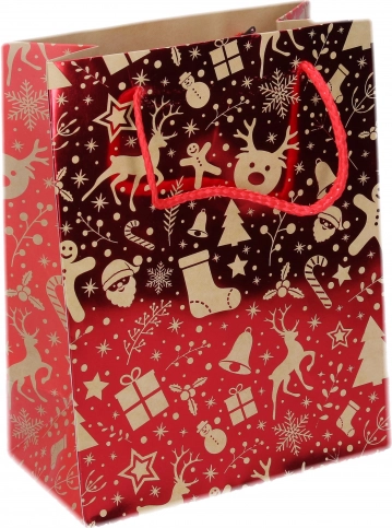 Die Geschenktasche in kleiner Größe ist ideal zum Tragen und Verpacken kleinerer Geschenke während der Weihnachtsfeiertage. Dieses Produkt bietet vier verschiedene stilvolle Motive, damit jedes Geschenk einzigartig und zauberhaft aussieht. Dank des hochwertigen Materials und des robusten Designs ist die Tasche langlebig und hält auch schwerere Gegenstände.