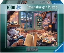Entdecken Sie Ruhe und Gelassenheit mit dem Puzzle Mein Zufluchtsort: Gemütliches Zimmer von RAVENSBURGER, das eine Herausforderung und Entspannung in einem durch tausend Teile bietet.