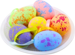 Das Set dekorativer Ostereier ist eine großartige Ergänzung, um eine festliche und frühlingshafte Stimmung in Ihrem Zuhause oder Garten zu schaffen. Die bunten gesprenkelten Muster und Pastelltöne verleihen Ihrem Interieur ein Gefühl von Wärme und Freude.