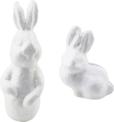 Dieses Set enthält zwei Polystyren-Hasen mit einer Höhe von 15 cm und 9 cm, die nach Belieben bemalt werden können, um ihre eigene einzigartige Erscheinung zu schaffen. Im Lieferumfang sind vier satte Farben und ein Pinsel enthalten, was das Malen einfach und angenehm macht. Die fertigen Dekorationen können dann als Tischschmuck, im Kranz, im Korb oder in anderen Feiertagskompositionen verwendet werden.