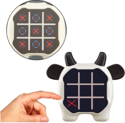 Produkteigenschaften: - Interaktive Licht- und Soundeffekte: Jedes Spiel wird spannender und fesselnder. - Niedliches, von einer Kuh inspiriertes Design: Ideal, um die Aufmerksamkeit von Kindern zu gewinnen. - Leichte und kompakte Konstruktion: Einfach mitzunehmen in die Schule, auf Reisen, in den Urlaub oder zu Treffen mit Freunden. - Drei verschiedene Spielmodi: - Tic-Tac-Toe: Traditionelles Strategiespiel. - Duell: Perfekt für zwei Spieler und fördert soziale Fähigkeiten. - Gedächtnis: Trainiert Erinnerung und Konzentration.
