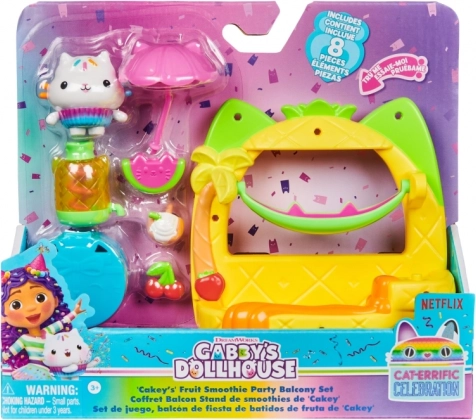 Erweitere dein GABBYS Katzenhaus um einen stylischen Smoothie-Balkon, auf dem Cakey fruchtige Leckereien mixt und in der Hängematte entspannt. Dank der einfachen Befestigung unter den Fenstern des Hauses und dem umfangreichen Zubehör macht das Spielen sofort Spaß. Öffne die Katzenpost, entdecke ein großes Gefäß als Überraschung und scanne den QR-Code, um eine besondere Belohnung in der kostenlosen App (iOS/Android) freizuschalten.