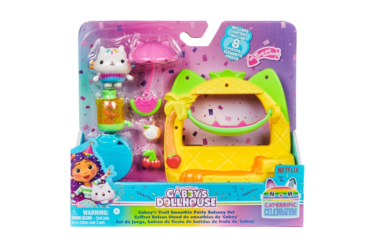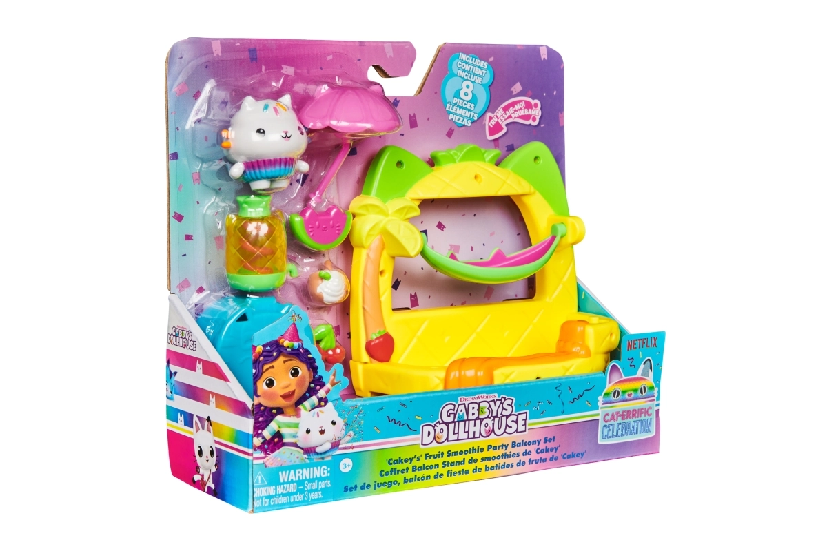 Originalfigur Cakey, Befestigung des Balkons am Haus und reichhaltiges Zubehör für endlose Szenen aus der Lieblingsserie.