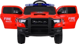 Das lizenzierte Kinderauto RAM im Feuerwehrdesign Fire & Rescue bietet ein realistisches Fahr- und Einsatzerlebnis. Dank der starken 4×12-V-Motoren (25 W) und der kapazitätsstarken 12 V 10 Ah Batterie meistert es Asphalt, Pflaster und Gras. Für Komfort und Sicherheit sorgen weiche EVA-Räder, hintere Stoßdämpfer, öffnende Türen und ein 3-Punkt-Sicherheitsgurt auf dem Sitz aus Kunstleder.