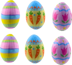 Die dekorativen Eier bieten spielerische Blumen- und Karottenmotive in lebendigen Farben, die jede Osterdekoration aufleben lassen.