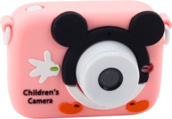 Das großartige spielerische Design der Kamera mit Mausohren zieht kleine Fotografen an. Der rosa Farbton mit schwarzen, weißen und orangefarbenen Details ist ideal für Kinder.