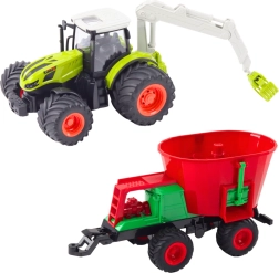 Der Traktor mit großen Rädern, Sämaschine und funktionsfähigem drehbarem Greifer bietet ein authentisches Felderlebnis und fördert kreative Spielszenarien.