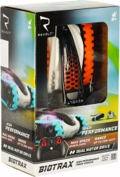 REVOLT BIOTRAX ist ein mini Ketten-Geländemodell, das mit verschiedenen Untergründen zurechtkommt – vom Teppich bis zum Rasen. Robustes Kunststoffgehäuse und Gummiketten bieten hervorragenden Grip und Haltbarkeit, während LED-Effekte jeden Trick und jede Nachtfahrt hervorheben.