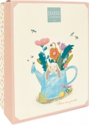 Hase Ciboulette ist in einem rosa Cordanzug mit einer Gänseapplikation bekleidet, die zum Drücken und Kuscheln einlädt. Dieses niedliche Spielzeug unterhält und beruhigt das Kind. Das Set beinhaltet auch eine wiederverwendbare Geschenkbox, ideal zum Aufbewahren von Erinnerungen wie Fotos oder anderen Andenken von der Geburt des Babys.