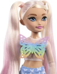 Die Barbie-Puppe „Malibu“ aus der Dream Besties Kollektion bringt frischen Style und Freude an Bewegung ins Spiel. Im Schmetterlings-Outfit, mit Knieschonern und hellblauen Quad-Rollschuhen ist sie bereit für großartige Fahrten. Lange Haare in Zöpfen mit rosa Ombré-Effekt laden zum Kämmen und Stylen ein.