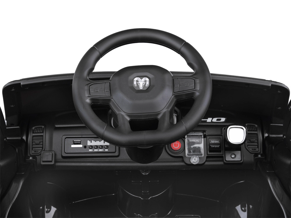 Das Kinderfahrzeug RAM ist ein lizenziertes Modell, das mit seinem Design die Träume aller Liebhaber von Vierradfahrzeugen erfüllt. Dank des leistungsstarken Antriebs eignet es sich für Fahrten auf Asphalt, Pflaster und Rasen. Die leicht zu öffnenden Türen erleichtern den Einstieg, während der bequeme Sitz mit 3-Punkt-Sicherheitsgurt Komfort und Sicherheit bietet. EVA-Räder und Stoßdämpfer an den Hinterrädern erhöhen den Fahrkomfort.