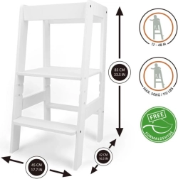 Der Turm ist universell gestaltet, um zu den meisten Küchenarbeitsplatten oder Badezimmerspülen zu passen, und er ist aus formaldehydfreien Materialien hergestellt. Ideal für Kinder im Alter von 18 bis 48 Monaten.