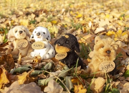 Die Füllung der Plüschhunde besteht aus recycelten PET-Flaschen, was zum Schutz der Umwelt beiträgt.
