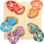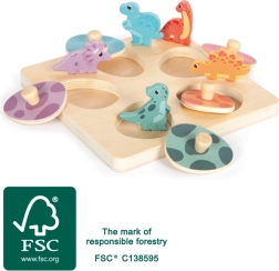 Dieses robuste Holzspielzeug in leuchtenden Farben begeistert alle kleinen Dinosaurier-Fans. Unter sechs Eiern verbergen sich sechs hölzerne Dinosaurier in passenden Farben, sodass Kinder sowohl ihr Gedächtnis als auch das Zuordnen trainieren. Dank der praktischen Knopfgriffe ist das Spiel ideal für den ersten Umgang mit Puzzleteilen.