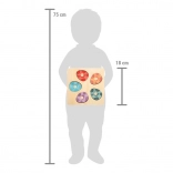 Jedes Teil hat einen knopfförmigen Holzgriff, der die Handhabung erleichtert und einen korrekten Griff sowie die Feinmotorik unterstützt.