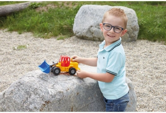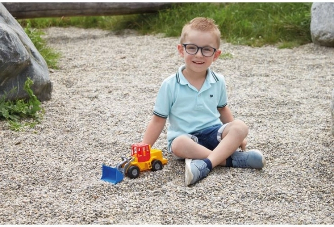 Dieser Kunststoff-Radlader von Lena bietet ein realistisches Aussehen und zuverlässige mechanische Funktionen ganz ohne Batterien. Kinder bedienen Schaufel und Arm mühelos und fördern Feinmotorik sowie Fantasie beim Straßenbau, Umschütten von Sand oder Transport kleiner Spielsachen.