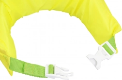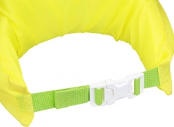 Eine robuste Kunststoffschnalle mit verstellbarem Gurt wird am Rücken geschlossen, sodass das Kind sie nicht selbst öffnet. Sie sorgt für einen sicheren und stabilen Sitz beim Spielen und Schwimmen.