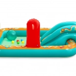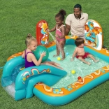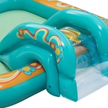Das aufblasbare Spielcenter BESTWAY Retro Groove verwandelt Ihren Garten in einen farbenfrohen Wasserspielplatz. Die stabile Rutsche, fest am Boden fixiert, führt in ein flaches Becken, und für Erfrischung sorgt der Wassersprühkopf, der einfach an den Schlauch angeschlossen wird. Retro-Grafiken und Zubehör wie Bälle und ein Strandball fördern kreatives Spiel und die Motorik.