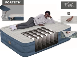 Das aufblasbare BESTWAY-Bett besteht aus dem robusten Material Tough Guard Fortech, das die Flexibilität von PVC mit der Festigkeit von Gewebe kombiniert. Die weiche beflockte Oberfläche ist angenehm, rutschfest und erhöht den Schlafkomfort. Die stabile Wave Beam Konstruktion verteilt das Gewicht gleichmäßig und verhindert das Einsinken.
