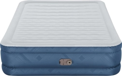 Enthalten ist eine integrierte elektrische Pumpe 220–240 V, die die Matratze in etwa 3 Minuten aufbläst. Für Orte ohne Strom kann auch eine Hand- oder Fußpumpe verwendet werden. Ein Sicherheitsventil hilft, den Druck zu halten und beugt ungewolltem Luftverlust vor. Die maximale Tragfähigkeit beträgt 350 kg und sorgt so für Zuverlässigkeit auch bei intensiver Nutzung.