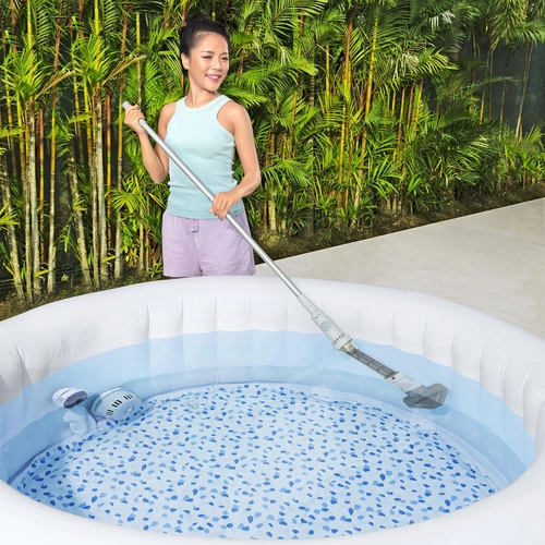 Halten Sie das Wasser mühelos kristallklar. Der kabellose BESTWAY-Staubsauger ist für kleine Aufstellpools und Whirlpools konzipiert und saugt zuverlässig Sand, Laub und Ablagerungen. Dank leichtem Teleskopstiel erreichen Sie bequem alle Ecken und Formen des Pools.